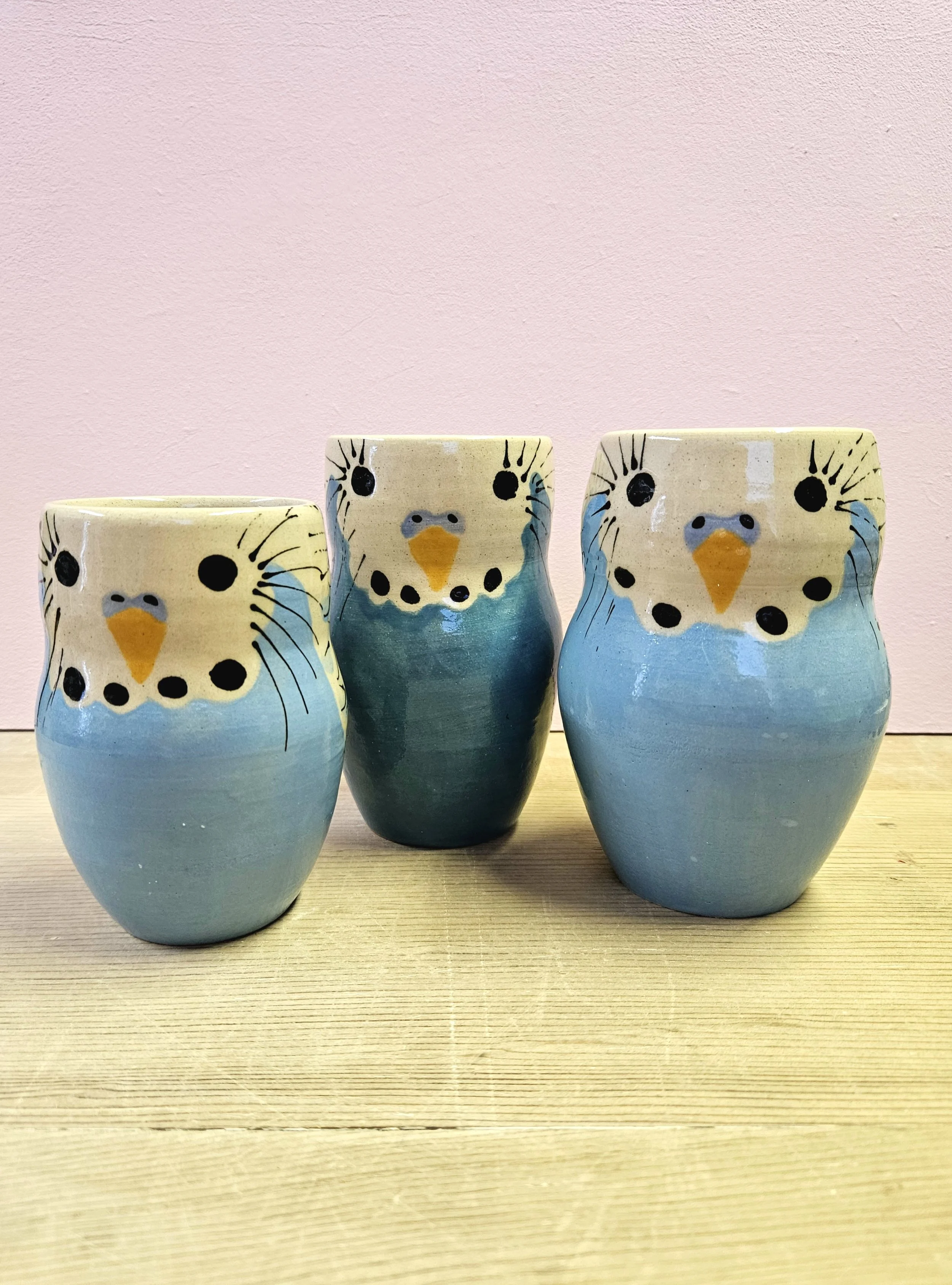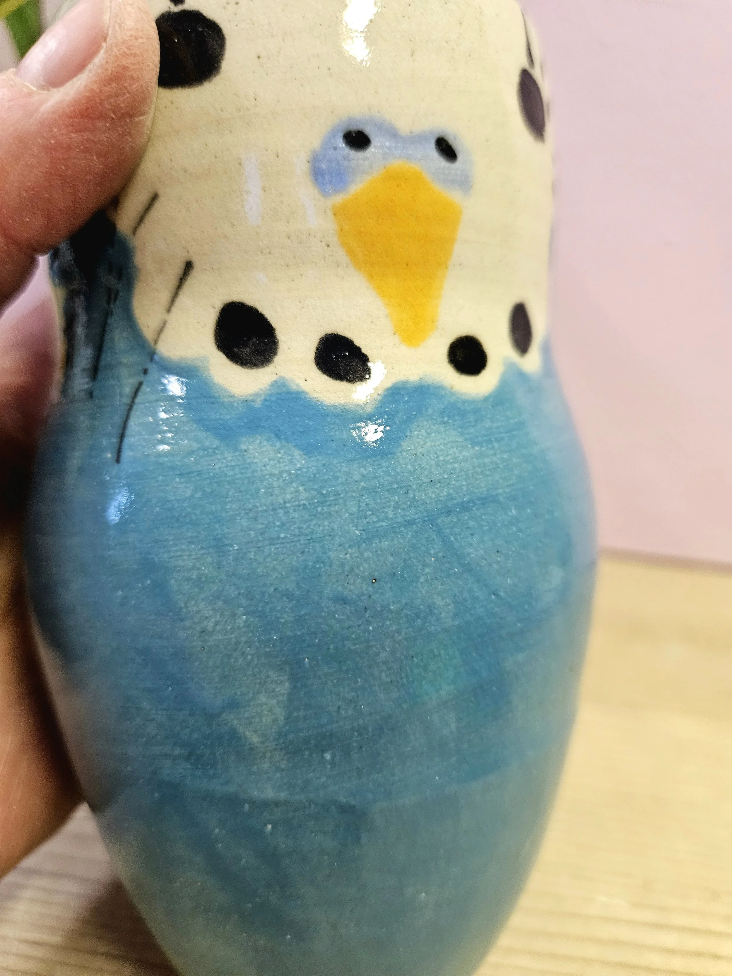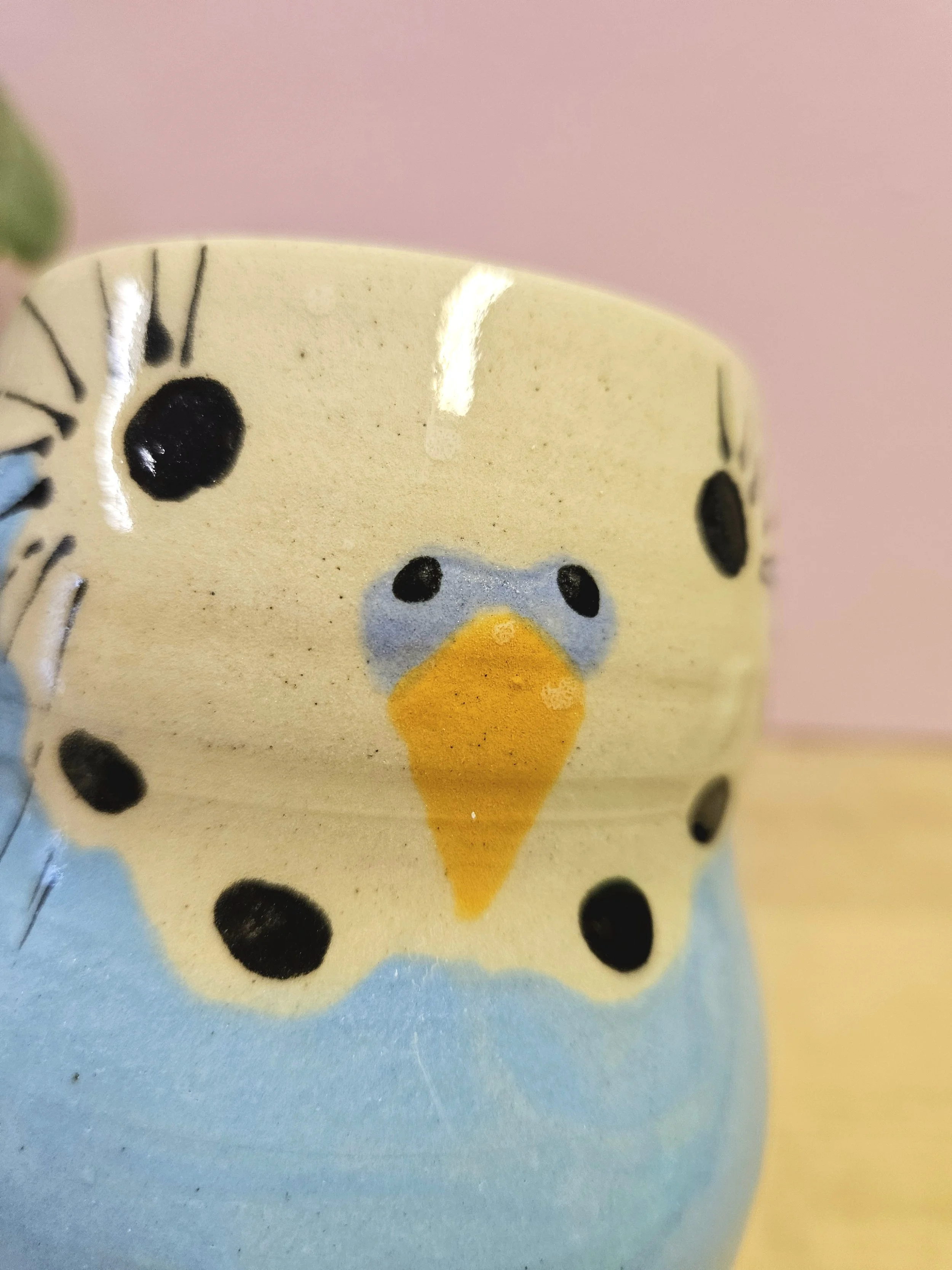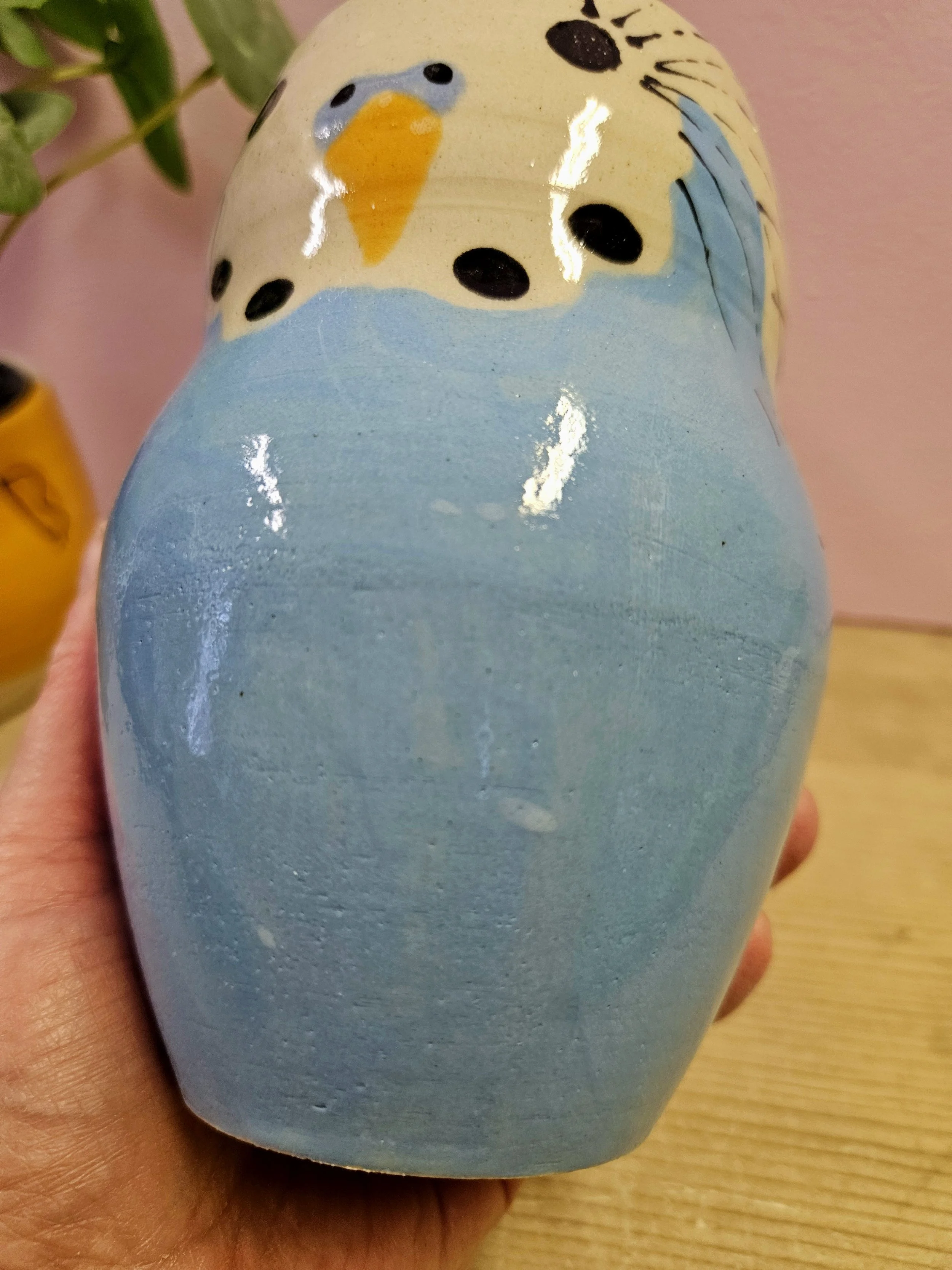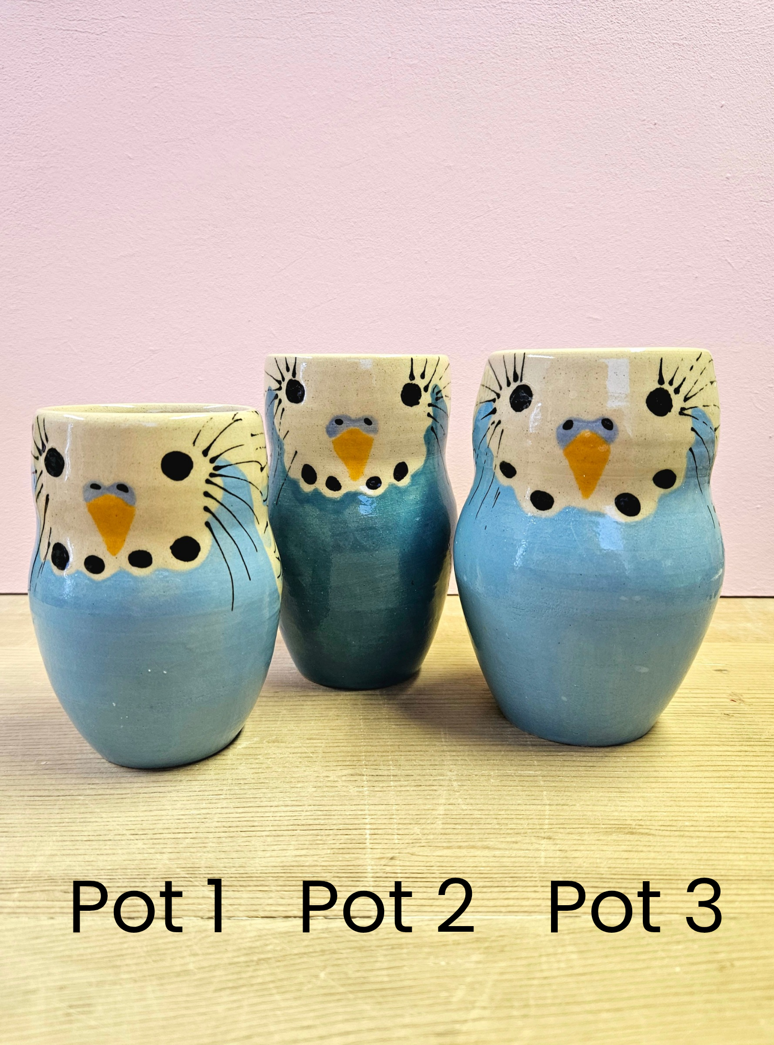 Christmas card featuring a budgie and the caption 'Seasons Tweetings'