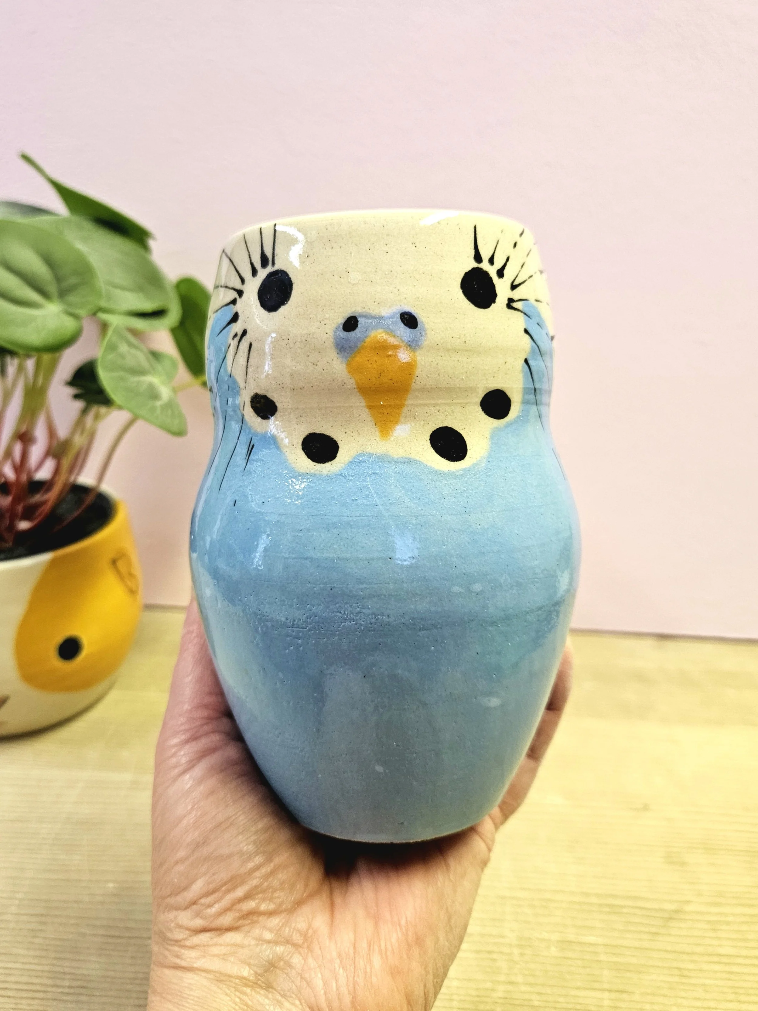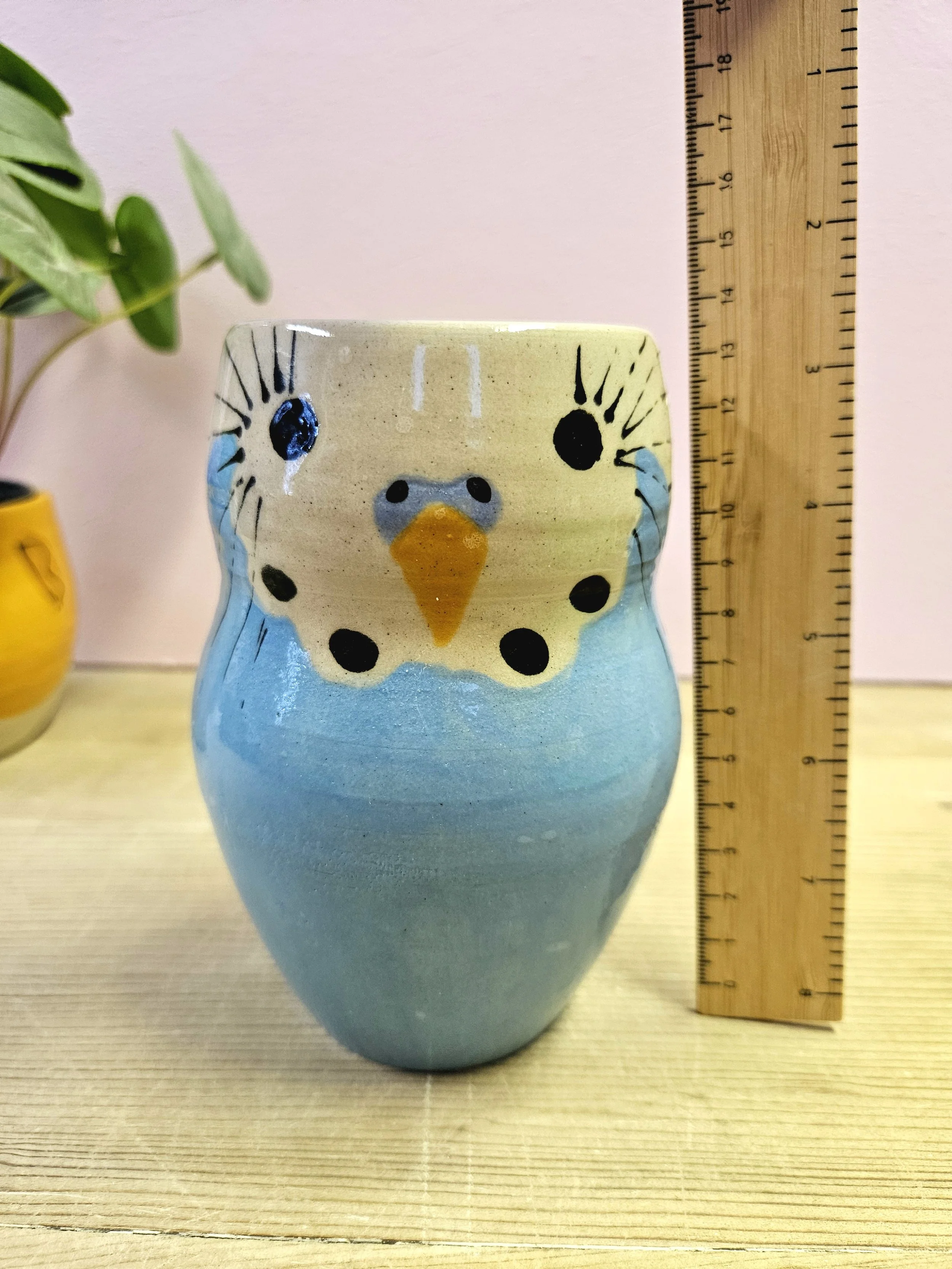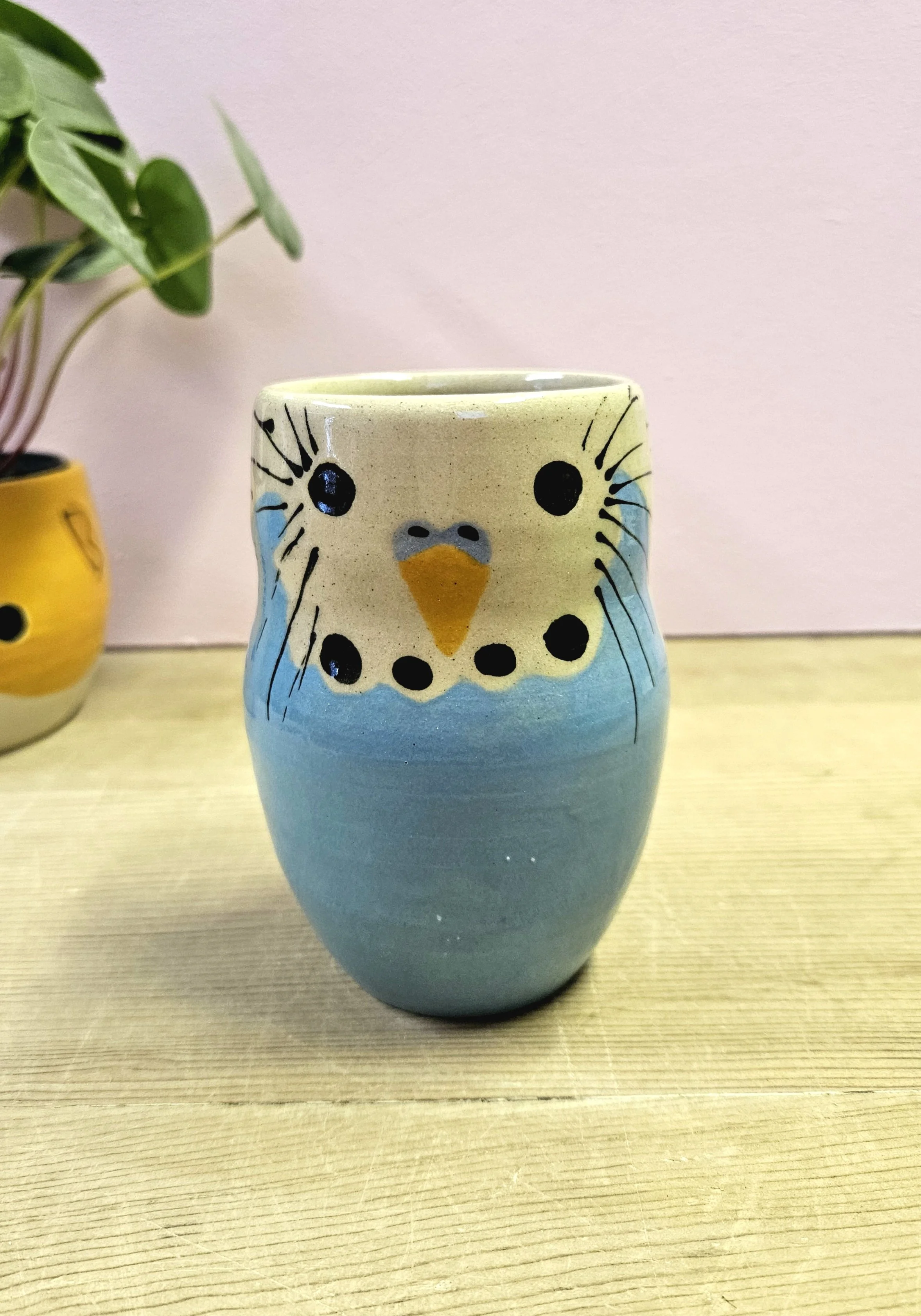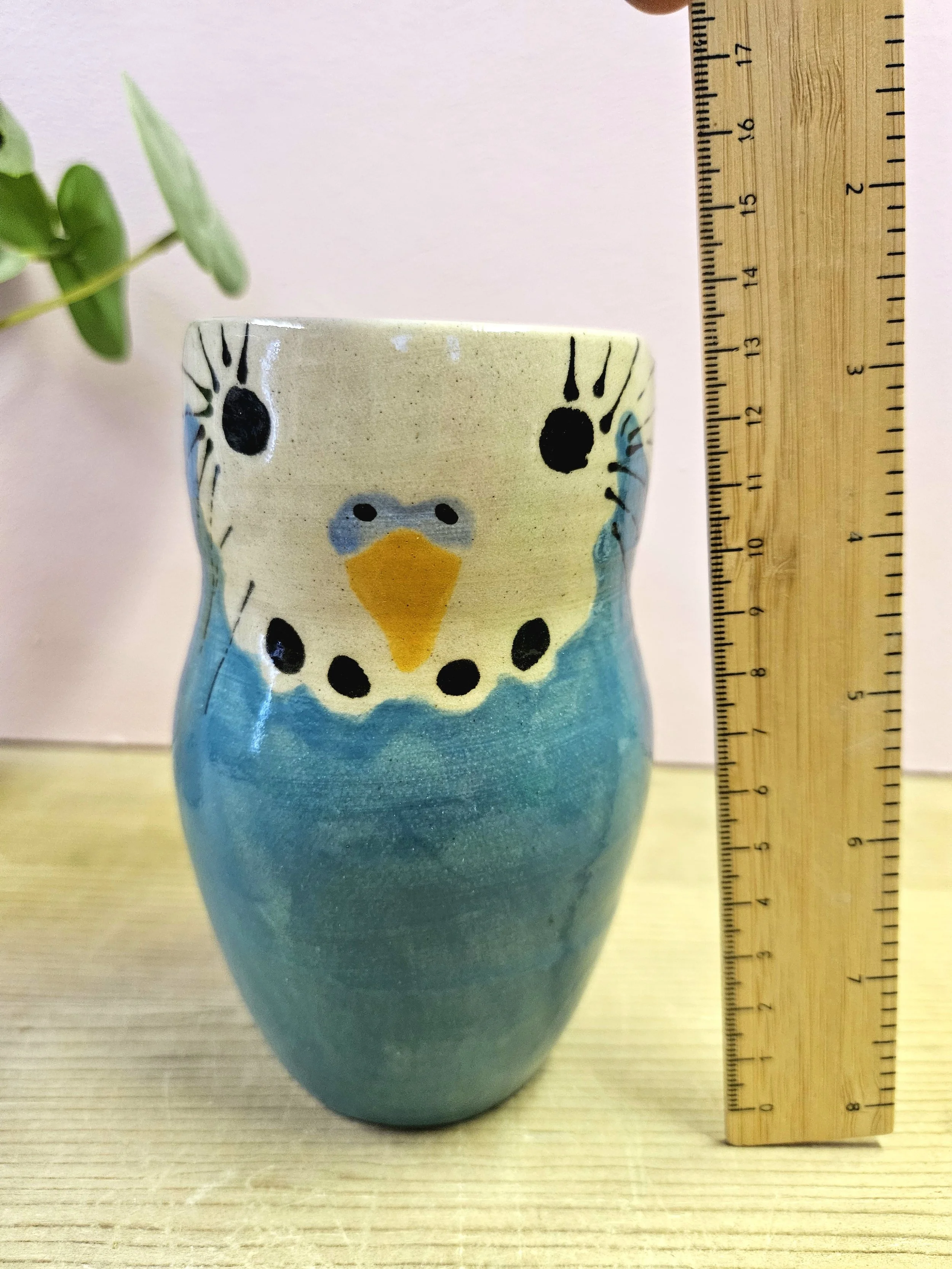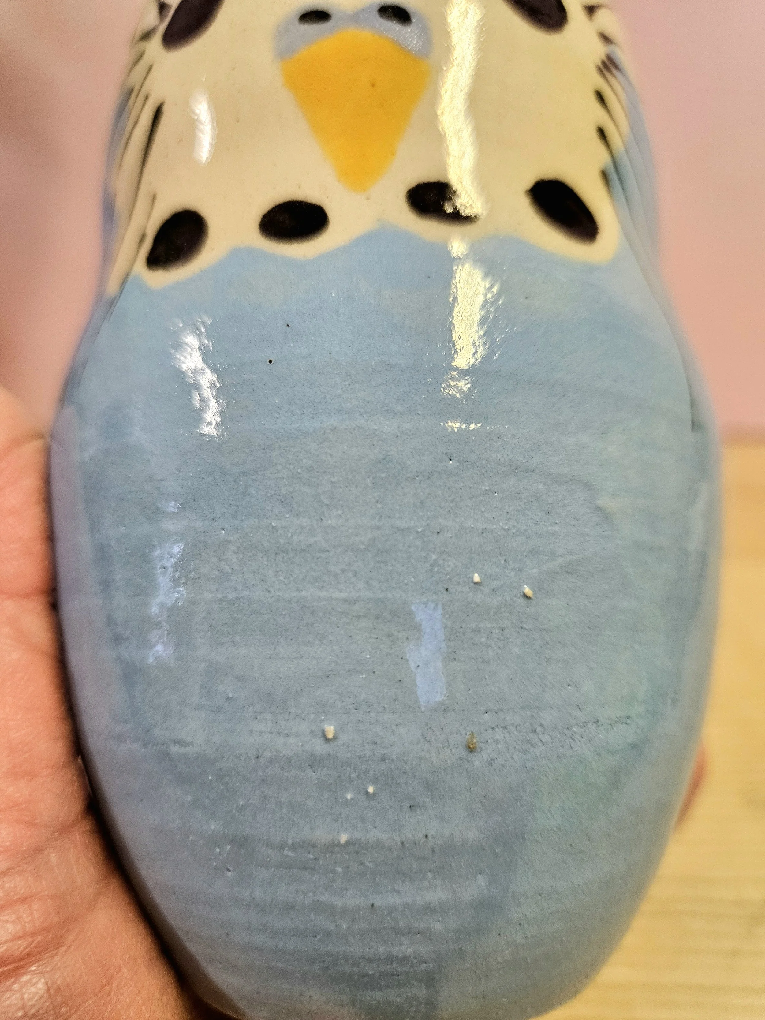 Christmas card featuring a budgie and the caption 'Seasons Tweetings'