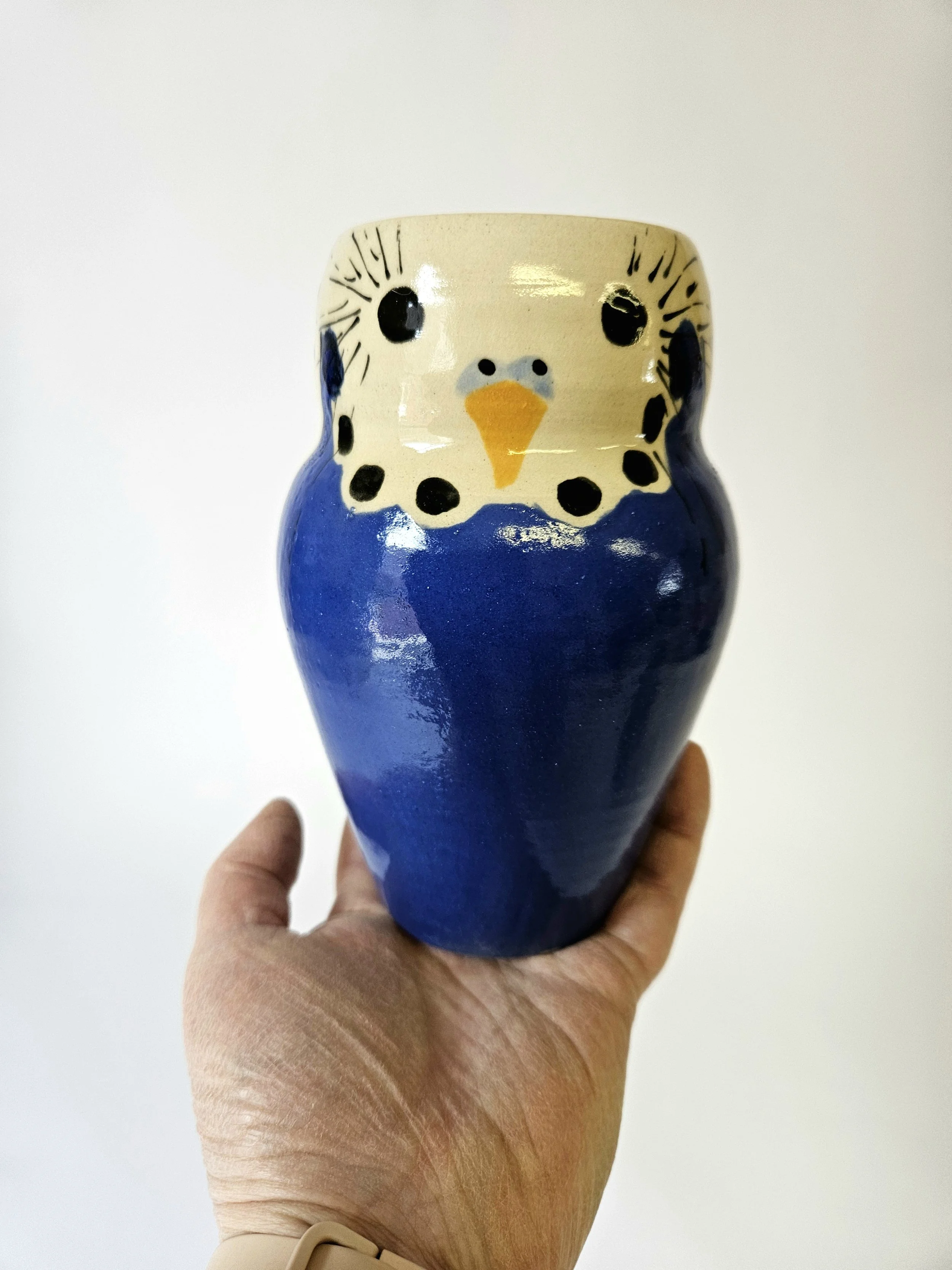 Please note: These budgie mugs are made completely by hand, so they may differ slightly from the photograph.
