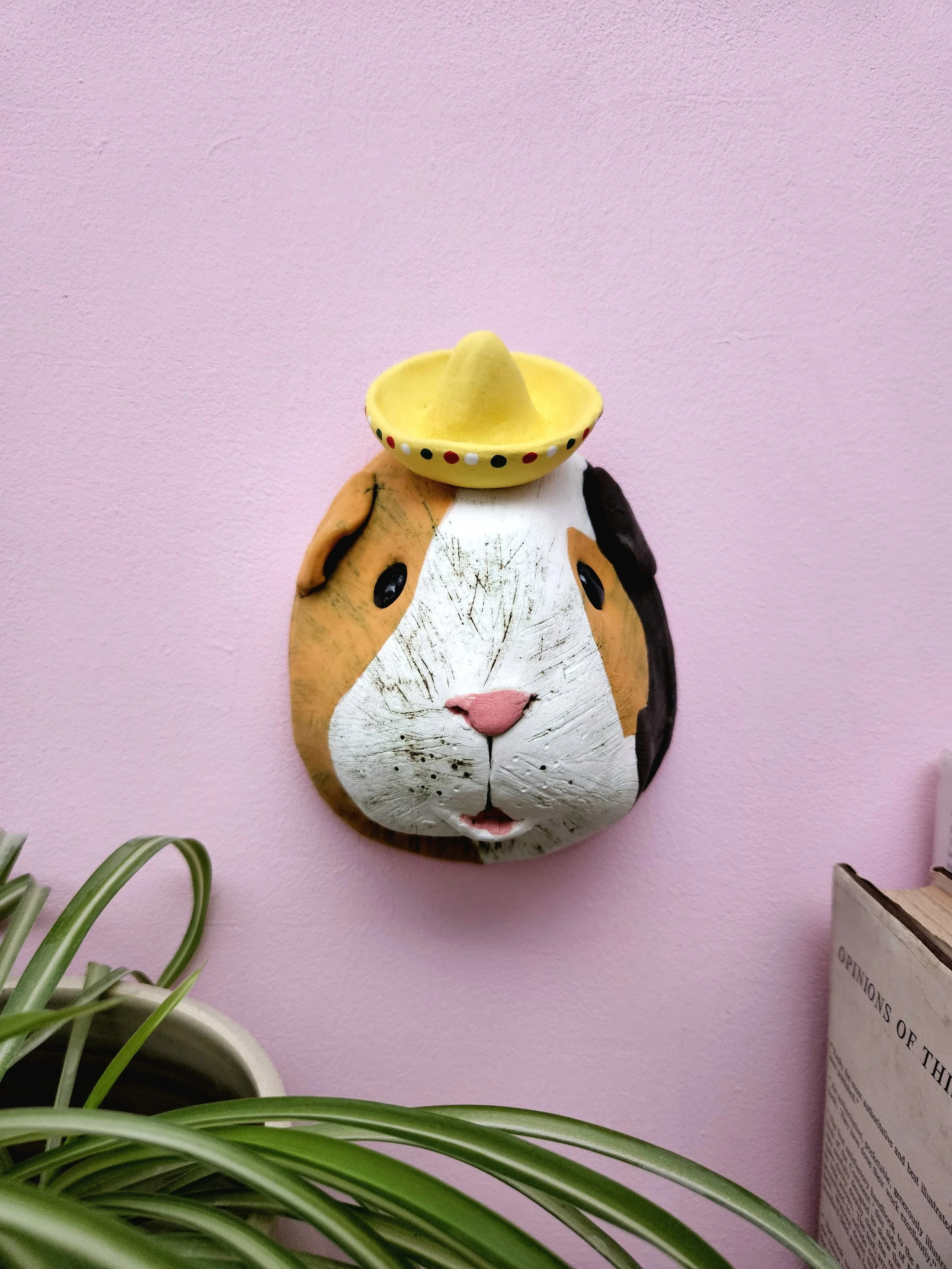 Say hello to Senor Pig, the guinea pig. A wall mounted trophy style animal head in a sombrero.
