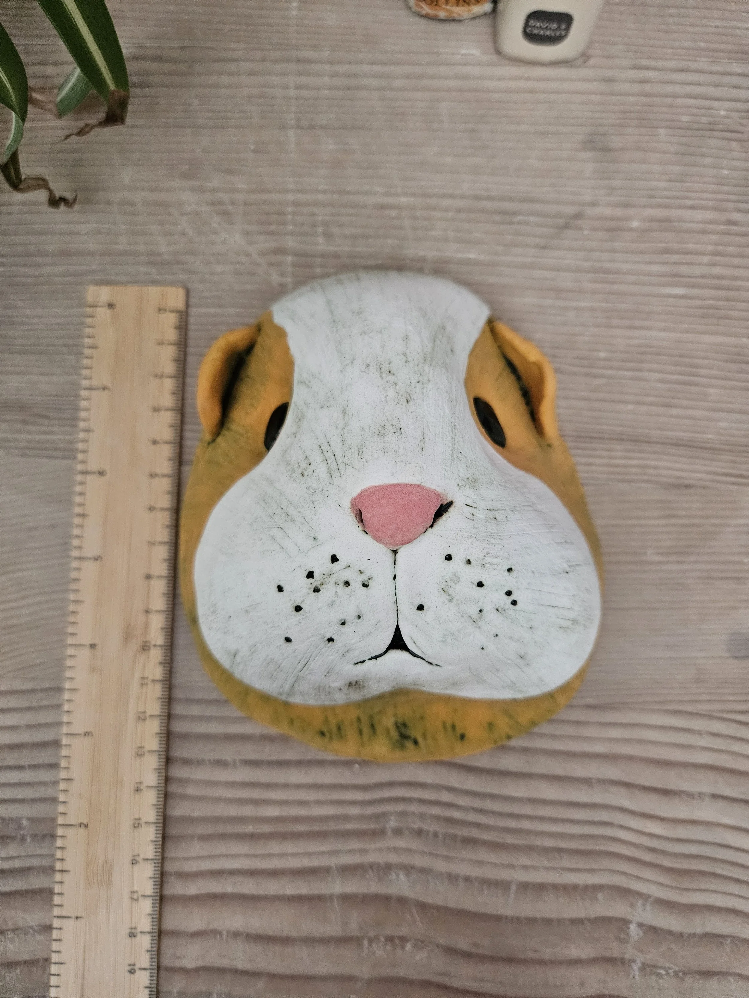 George is hand-modelled from stoneware and painted in under glaze by Charlotte Miller in her Dorset-based ceramics studio. The guinea pig has a matt finish with gloss eyes.